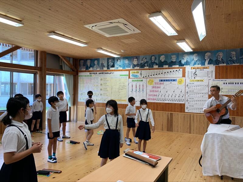 授業の途中で先生の演奏に合わせて楽しく歌いました。