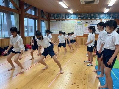 5年生は身体測定を終え、新しい並びで体育の活動をしました。