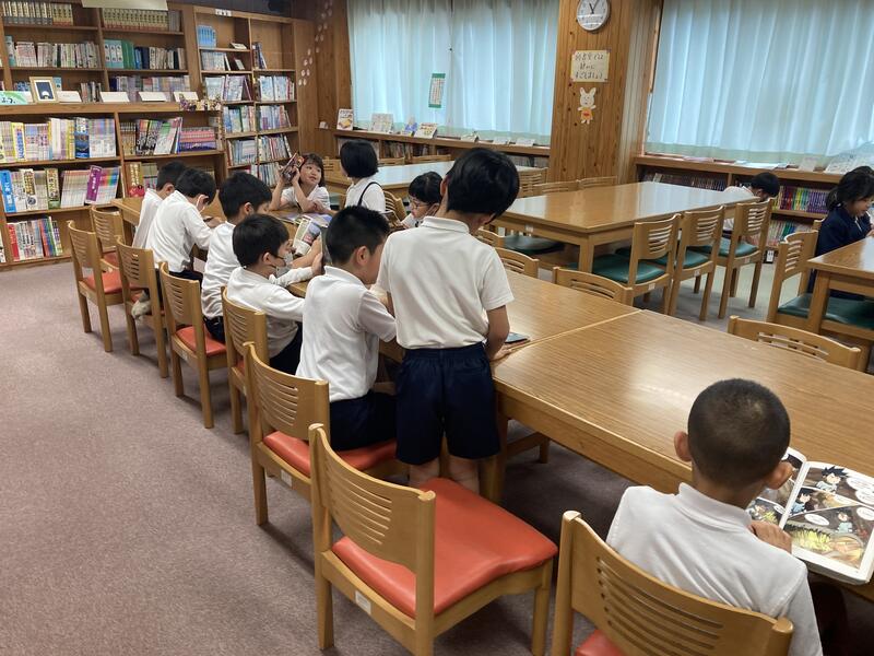 図書室に本を借りに行きました。3年生では動物の本やなぞなぞの本が人気のようです。雨の日は外に遊びに行くことはできませんが本を読んでしずかに過ごしていました。