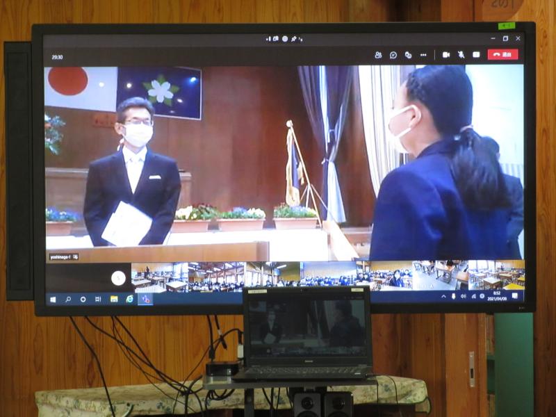 本日のえのきっこタイム(行間)にリモートでの全校集会がありました。