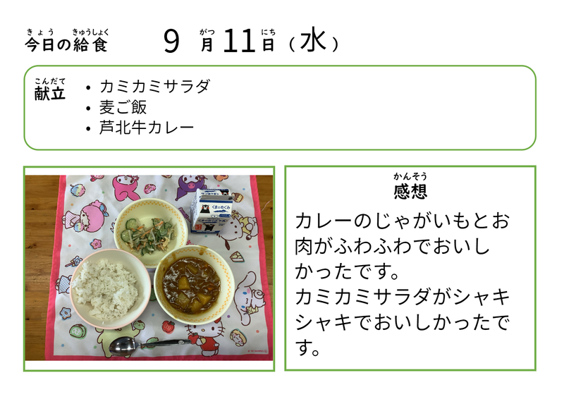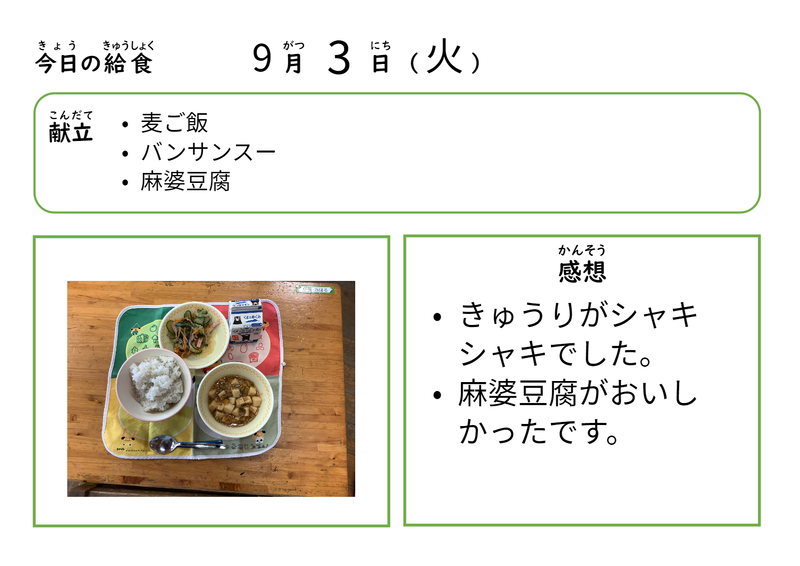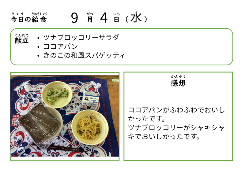 久しぶりの学校で、暑さが心配されましたので、各教室でオンラインの始業式となりました。校長先生から、2学期は、じっくりていねいに取り組み、「わかる」、「できる」にこだわり、時々自分をふりかえり、「しっかり力をつけよう」というお話がありました。今週はさっそくチャリティーバザーもあります。まずは生活リズムや体調を整えて、少しずつエンジンをかけて目標へ向かっていけたらと思います。