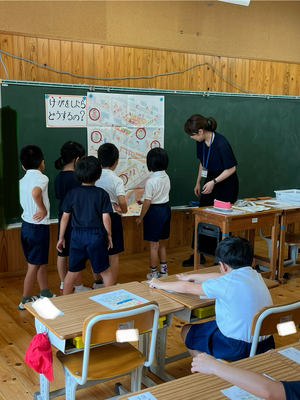 その後、健康教室として「けがをしたらどうするの」の学習をしました。
