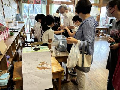 総合的な学習の時間に、岩永しょうゆさんと一緒に作ったみそ玉の販売を始め、射的・ボーリング・もぐらたたき・わなげ・生き物体験・かたもみ等…各クラス工夫をこらしたコーナーがたくさんありました。