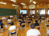 7月16日に熊本県球磨川流域復興局の方に来ていただいて、人や自然を災害から守るための取組についてお話していただきました。立体地図や映像で球磨川流域の様子や洪水のしくみについて分かりやすく教えていただきました。