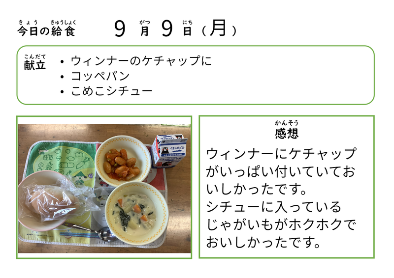 『1学期はともだちと仲よく笑顔ですごせましたか?2学期も元気に笑顔の花を咲かせましょう。』と書かれていました。