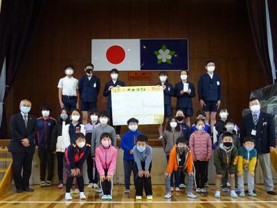 「佐敷小の子供たちのために」という「心」を伝えるために、何ができるか「想い」をはせ、バザーを行い、得たお金を届けるという19名の児童と地域の皆様の「真心」のこもったプレゼントをいただきました。義援金の活用については、子供たちと考え、大切に使わせていただきます。ありがとうございました。