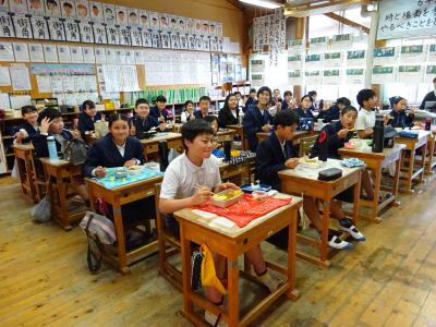 3年生の子ども達は、「お母さんの得意料理をお母さんに教えてもらいながら作りました。」「自分の好きなキャラクターのお弁当作りに初挑戦しました。」と笑顔で教えてくれました。食べている時の幸せそうな表情が、とても印象的でした。