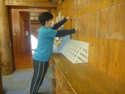 5年生の教室では、後ろの掲示スペースに児童の作品がいつでも掲示できるよう準備をしました。