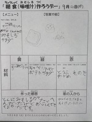 子供たちがみそ汁を作れるようになったり、卵焼きが巻けるようになったりして頼もしい限りです。豪華でなくて構いません。「赤・黄・緑」の入った簡単な朝食がいつか自分で作れるようになったらいいですね。