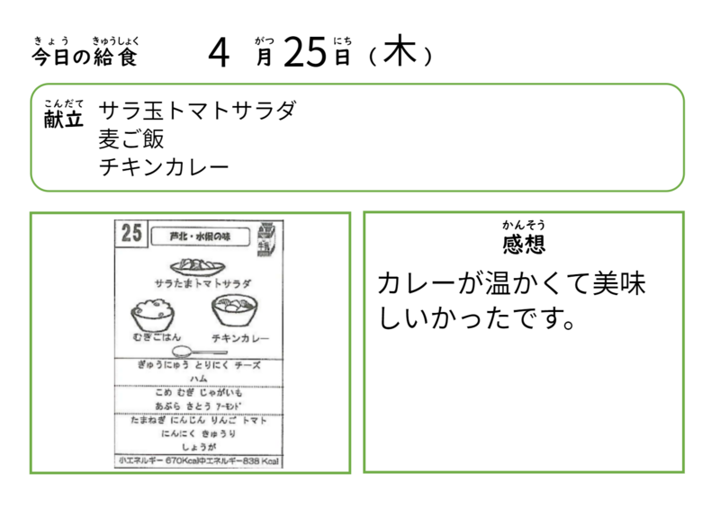 本日の給食はこちらになります!
