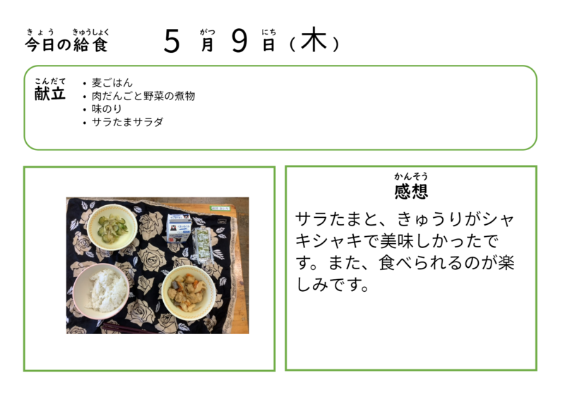 5月9日の給食になります!