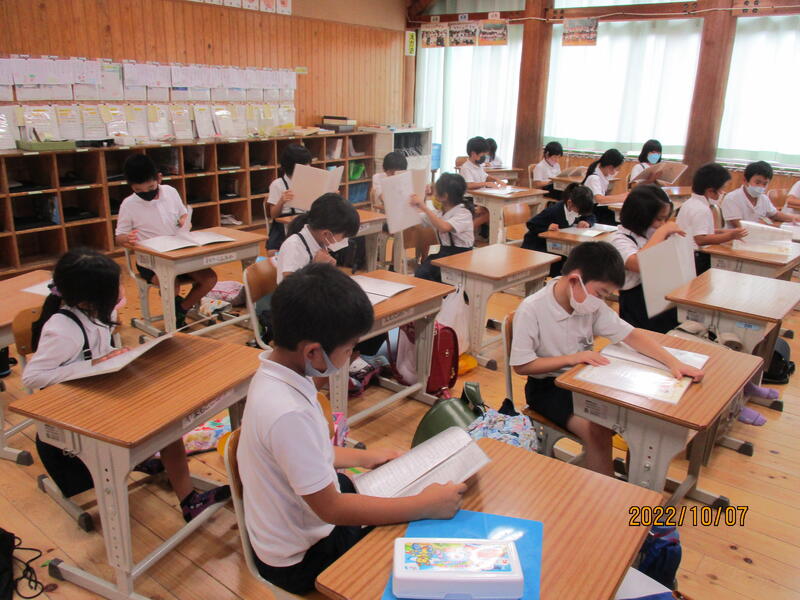 今週も朝の読み聞かせ、お世話になりました。感染対策で座席を近づけることができないため、大型の画面に絵本を映して読み聞かせをしていただきました。6年生のクラスでは、高学年向けの本を選んでいただき、子どもたちは、食い入るように聞いていました。読み聞かせを通して、豊かな情操を育んでいただいていることに感謝いたします。