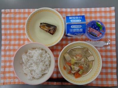 献立:とりめし、野菜のつみれ汁、里芋コロッケ、牛乳