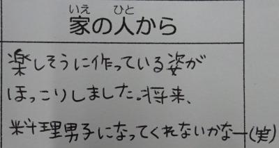 2月の朝食(味噌汁)作ろうデーの保護者の方の感想です。忙しいところ大変お世話になっています。読ませていただいてとても温かい気持ちになりました。子どもたちが食への関心を深めてくれているようで嬉しく思っているところです。