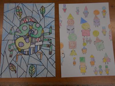 楽しい作品が出来上がりました。夢中で描く子どもたちの姿がキラキラしていました。素敵なアイデアを生かして何でもチャレンジする5年生の今後の姿を楽しみにしています。学習の様子と作品の一部を紹介します!