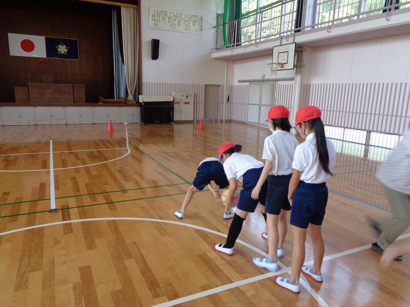 5年生は身体測定を終え、新しい並びで体育の活動をしました。