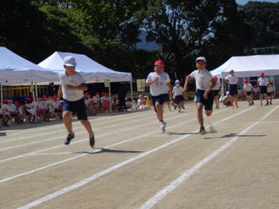 ※熱中症予防のため、競技中はマスクを外している児童もいますので、ご理解の程、よろしくお願い致します。