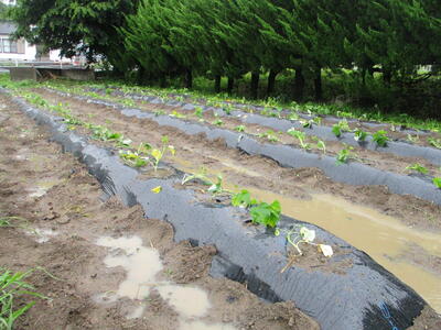 先週から、畝づくりやマルチを貼るなど準備していただきました。