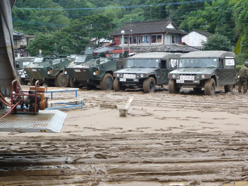 この日から自衛隊車両の臨時駐車場になりました。