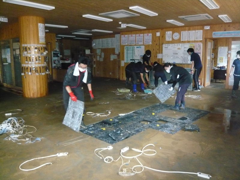 日曜日にもかかわらず、本校の職員に加え、管内の小学校の先生方や学校関係者の皆さんが復旧作業のためにかけつけてくださいました。