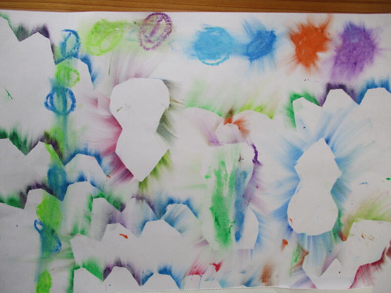 いろいろな色をかさねてみるときれいな模様ができました♪