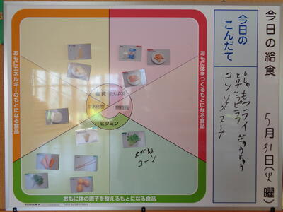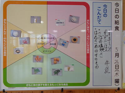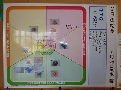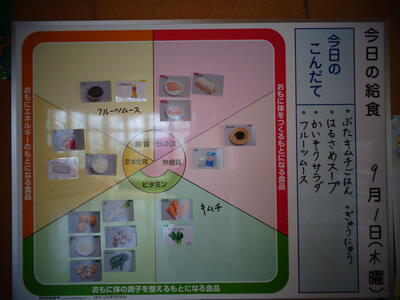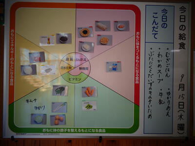 今日の給食は、9月19日の敬老の日にちなみ「まごはやさしい」の「豆、ごま