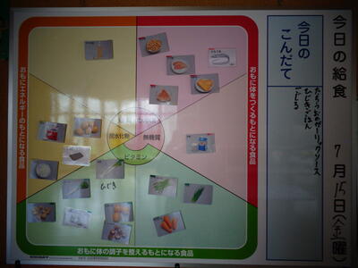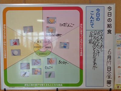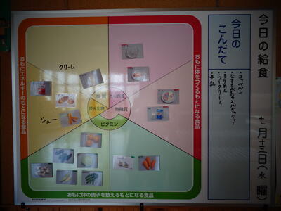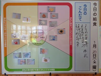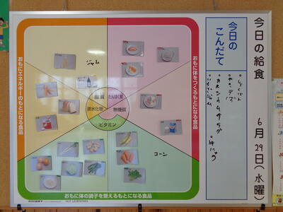 豊富な食べ物や、しっかりかんで食べてもらうために歯ごたえのある食べ物が入ってい