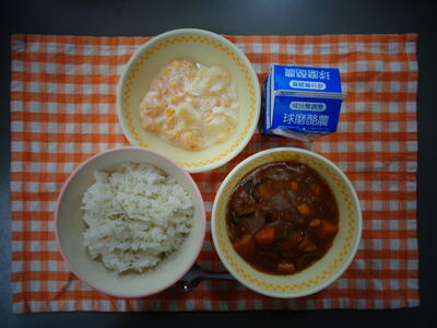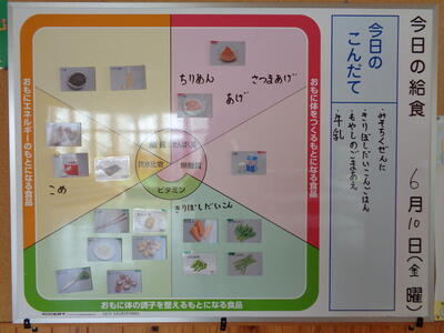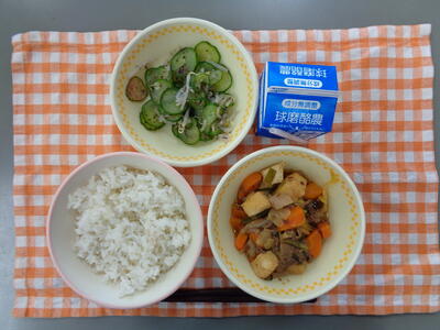 今日の給食は、くまさんデーで荒尾・玉名地区の特産品を使った料理でした。