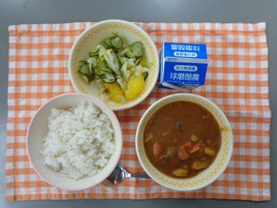 今日の給食は、大野小学校のリクエストメニューでした。フルーツヨーグルトの