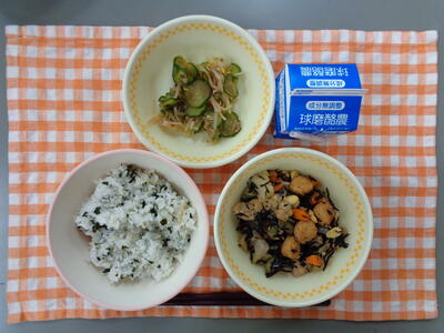 わかめ、野菜、魚、きのこ、いも」を全部使った献立でした。