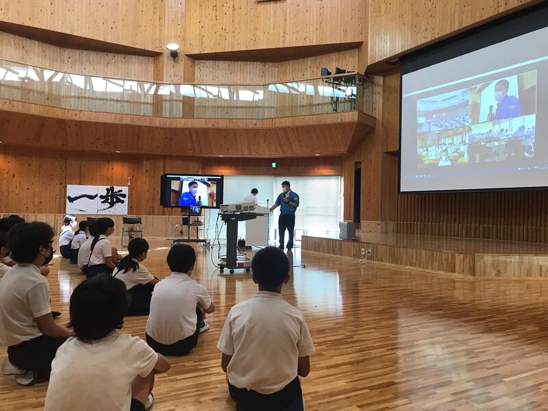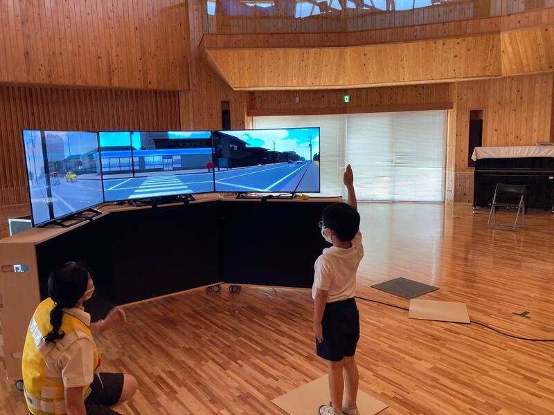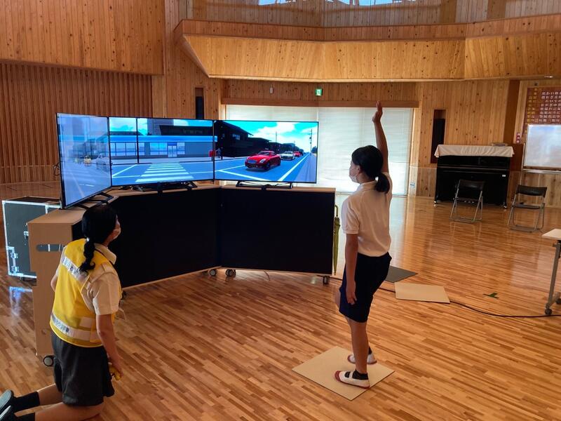 熊本県警本部「ひまわり隊」の方々にお越しいただき、危険予測シミュレータを使って学習しました。
