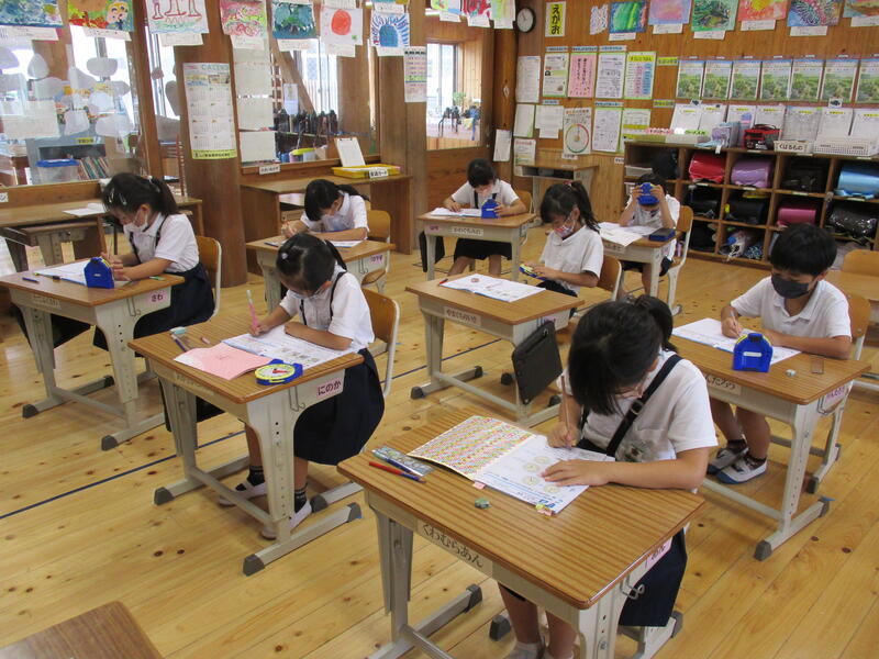 こちらは、漢字練習の風景です。運動会練習を頑張る中、授業も頑張っています。