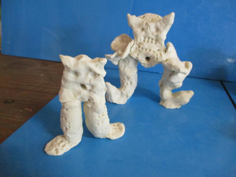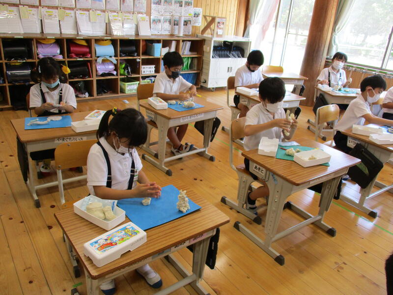 粘土をつまんだりひねったり穴をあけたりする技をみんなで練習した後、想像上の生き物「むぎゅたん」を作りました。面白いフォルムで今にも動き出しそうですね。思わず、「こんにちは!」とあいさつしてしまいそうではありませんか!?