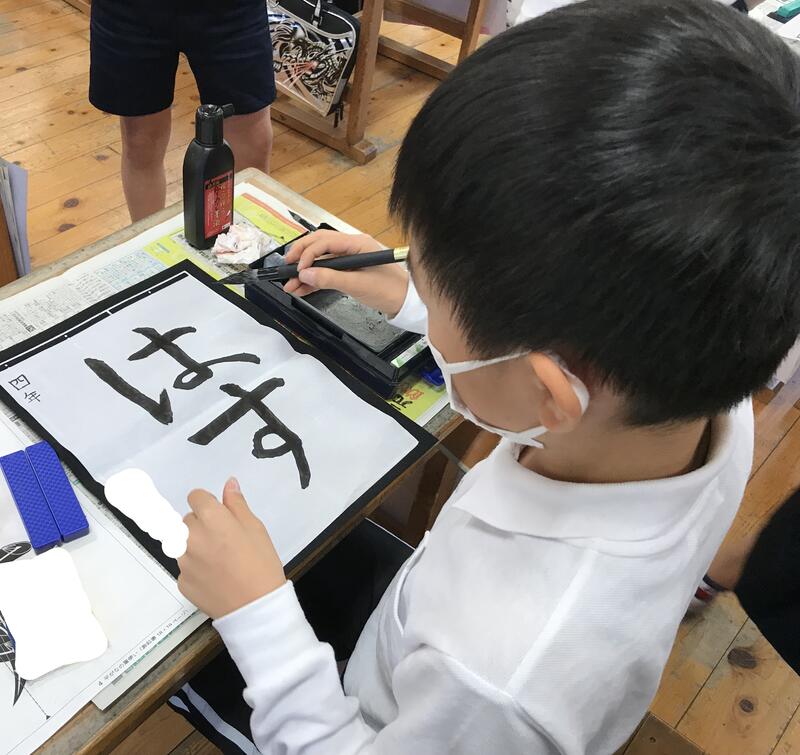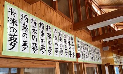1月12日に書き初めをしました。「将来の夢」の四文字を書きました。自分の将来に思いを馳せながら、集中して取り組み、とても丁寧に書けていました。