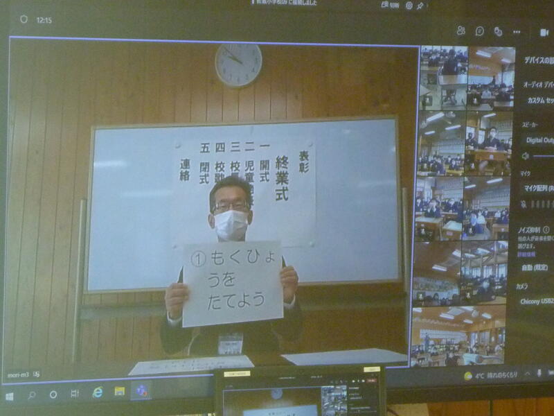 終業式では、校長先生から「目標を立てること」「めりはりをつけること」の大切さなどについて話があり、児童はしっかりと耳を傾けて聞いていました。
