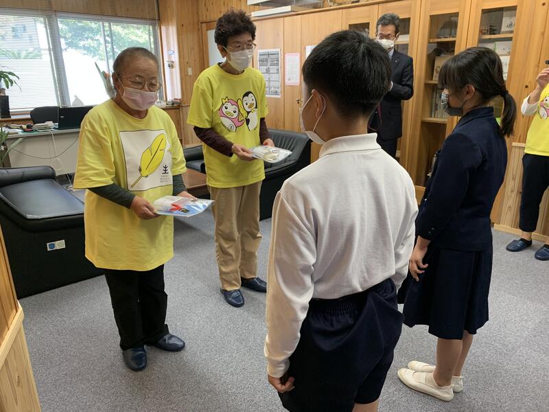 本日「芦北地区更生保護女性会」のみなさまより、4年生が今年度10歳になり2分の1成人式を迎えるということで、手作りの紅白のお餅とノートをいただきました。