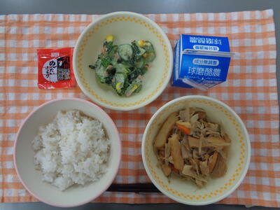 今日の給食は「味の旅・福岡県」で、筑前煮は福岡県の郷土料理です。