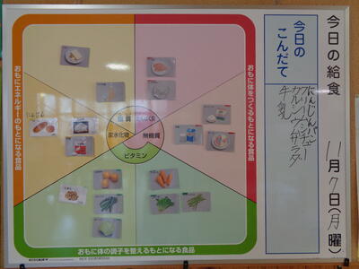 今日は「いい歯の日メニュー」です。よくかんで食べることを意識できるように、ごまや