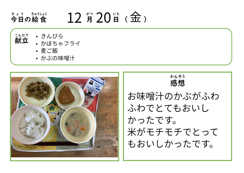 明日から14日間の冬休みが始まります。家庭でいろいろな予定があるかと思いますが、事故やけがなどなく3学期を過ごし、元気に新学期に登校してほしいです。