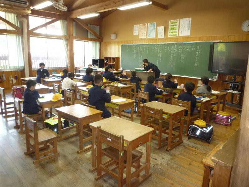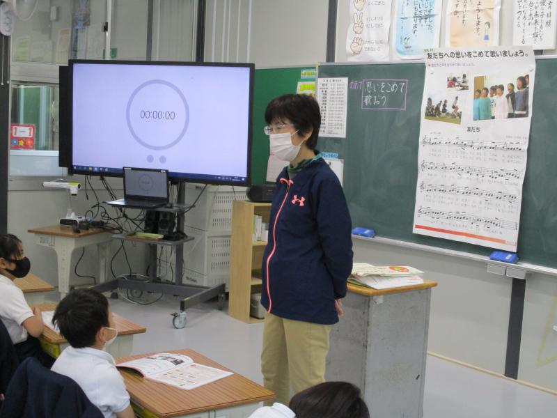 音楽では、「友だち」という曲の歌詞を読んで、どんな感じがするかを発表したり、距離を取ってみんなで歌ったりしました。素敵な曲に合わせて体を揺らしながら歌う子どももいて、さわやかな風が教室を通り過ぎたようでした。