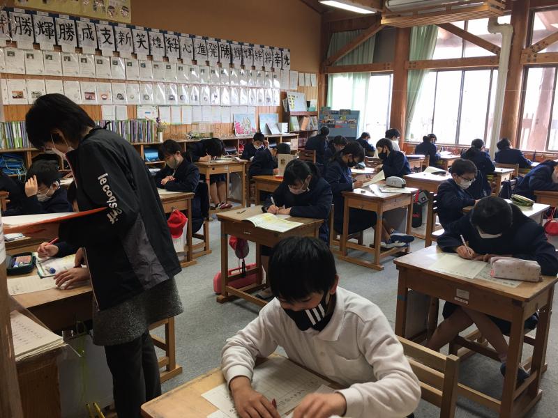5年1組では、3時間目の音楽の時間に「音楽で思いを伝えよう」の学習をしました。3月23日は、今までともに過ごした6年生の卒業式です。感染対策のため、残念ながら全員は式に出席できませんが、歌声で感謝の気持ちや思いを届けるために『君に会えて』の歌の練習をしました。大きな声は出せないため小さな声でしたが、気持ちを込めて歌いました。また、音符や記号をどのくらい覚えているかの確かめもしました。
