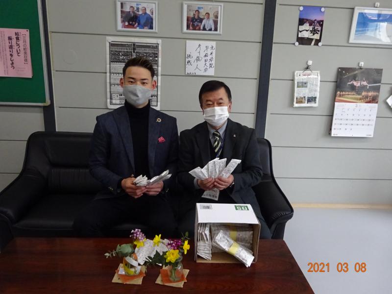 今日、佐敷小OBの佐藤様(現在東京の大学に在学中)が来校され、全児童分の文具を寄贈いただきました。