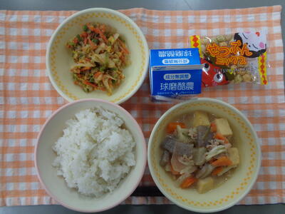 献立:ミルクパン、はるさめスープ、魚のフライ、人参しりしり、牛乳