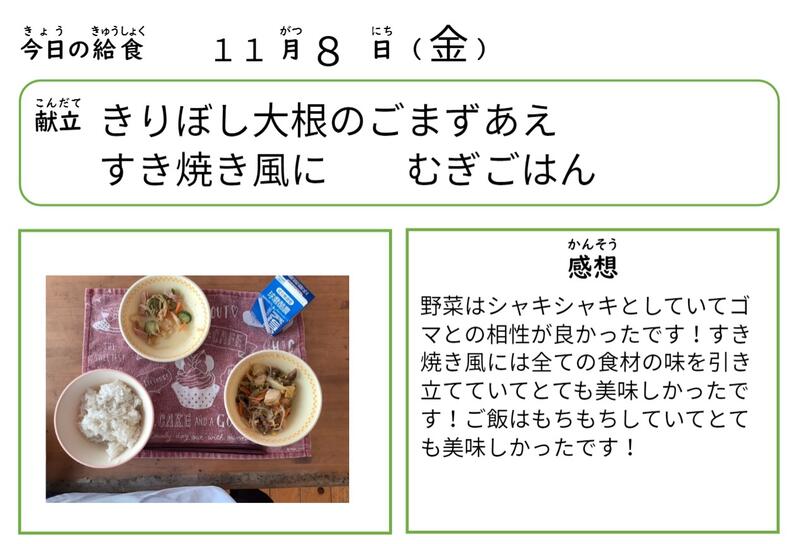 昨年度は、おいしい給食を毎回食べることができました。