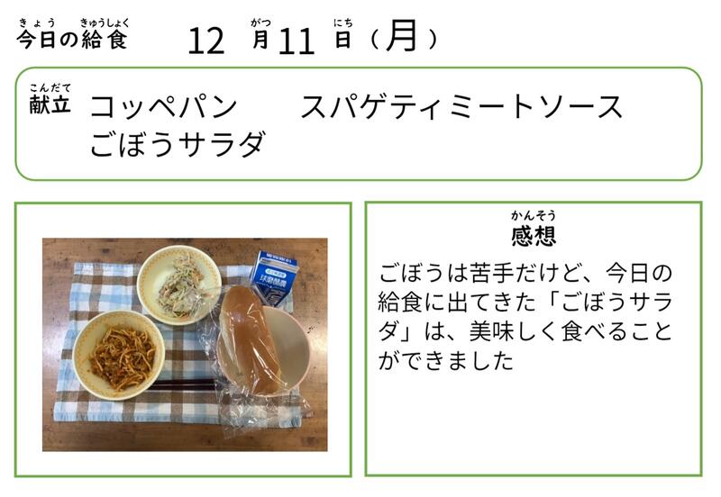 今週もおいしい給食をいただきました。