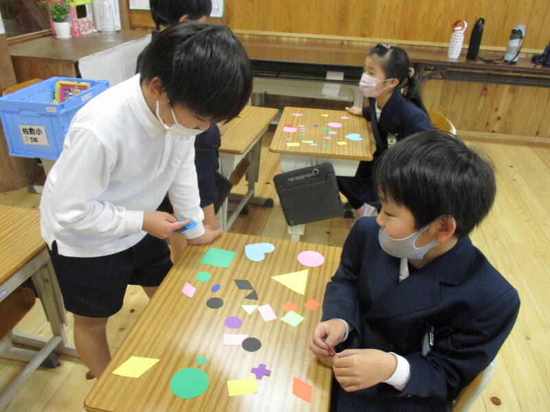 外国語の時間に「This is for you.」の学習をしています。今回は、お店屋さんが「Whatt do you want?」と尋ね、お客さんが「a green triangie, please.」などと自分の欲しいカードの色と形を伝え,そのカードをお店屋さんから受け取る活動をしました。子ども達は、色を表す言葉はすらすら出てくるのですが、形を表す言葉がすぐに出てこず、「え~っと、え~っと・・・」と頭を悩ませていました。どうにか自分の言葉で伝えようとすることが何より力になります。来週も頑張ります。