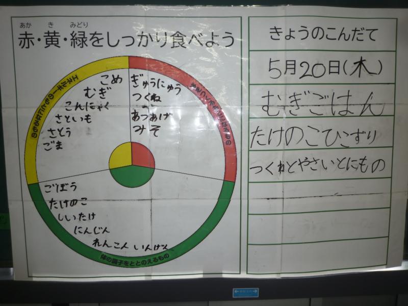 今日の献立は、牛乳・むぎごはん・つくねとやさいとにもの・たけのこのひこずり でした。