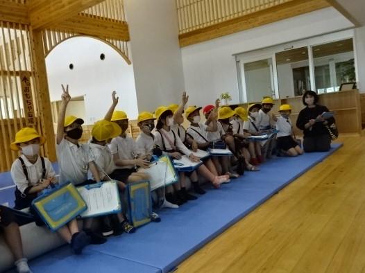 図書館とこどもの広場を見学させていただきました。芦北総合コミュニティセンターの方に質問したり、感想を発表したりしました。子どもたちは、コミュニティセンターの方の話を集中して聞くことができていました。最後には、こどもの広場で、遊ばせていただきました。たくさんの遊び道具があり、子どもたちにとって、とても楽しい時間になりました。。