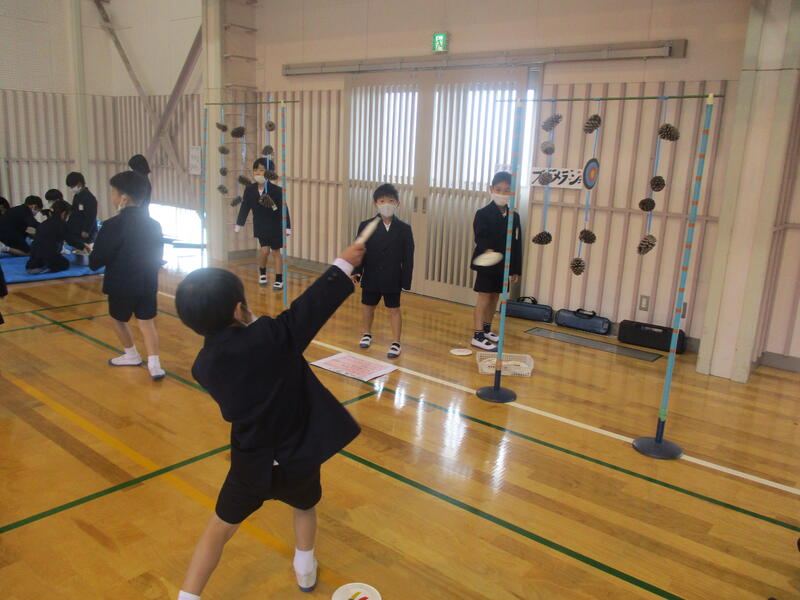 1年生が作った「秋の自然物を使ったゲーム」を楽しんでもらいました。