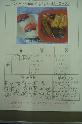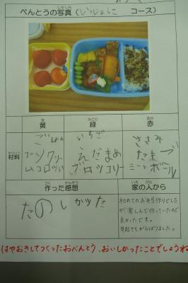 お弁当作ろうデーは、大変お世話になりました。子どもたちがおうちの方と一緒に作ったり教えて頂いている様子が伺えてとても嬉しく見させて頂きました。一部ですが紹介したいと思います。